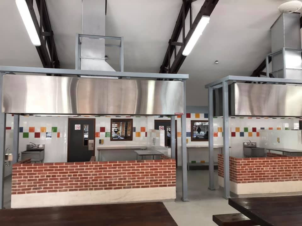 Commercial grade exhaust with air volume control system with variable speed (VFD) at Curaçao's local kitchen market “Plasa bieu” in Punda, in a collaboration with Supreme Restaurants Equipments and Gomperts Cooling Services.